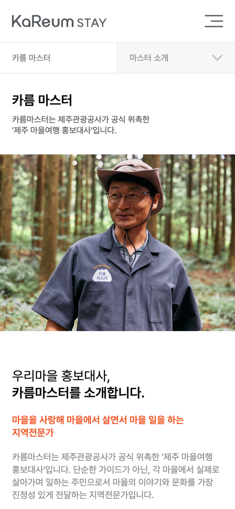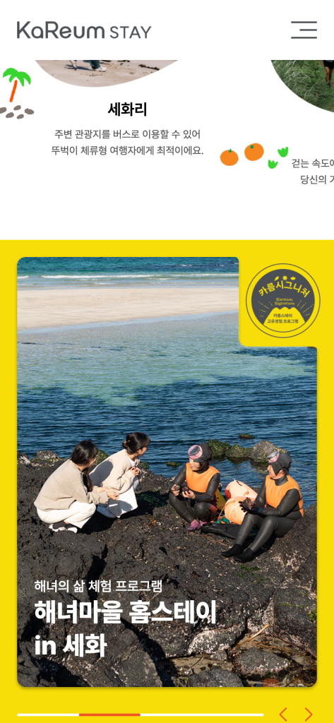 제주 관광 공사 카름스테이 모바일 웹사이트, 모바일 웹디자인