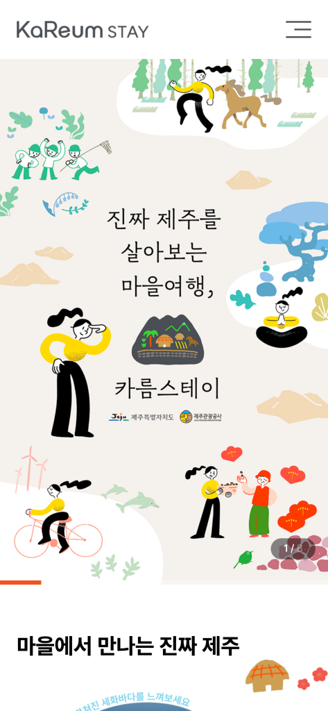 우리가 잘 몰랐던 제주의 작은 마을들에서 시작되는 특별한 여행 이야기, 제주 마을에서 깊은 숨을 쉬면서 머무는 여행이 바로 카름스테이입니다.
