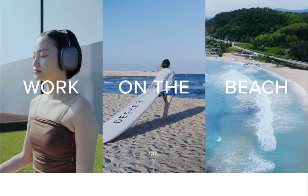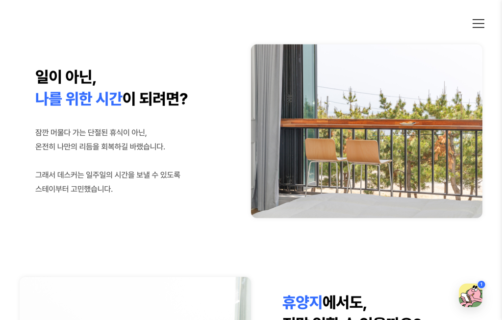 푸른 바다를 마주하며, 당신의 일과 쉼을 위한 새로운 워크라이프의 시작. 데스커 워케이션 웹사이트, 웹디자인