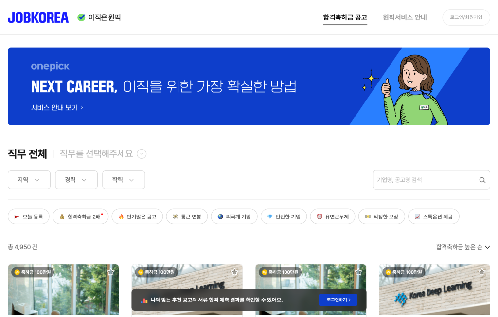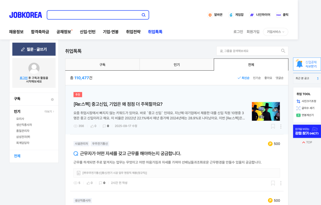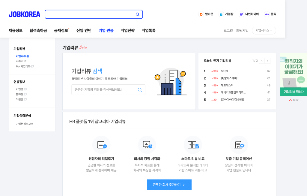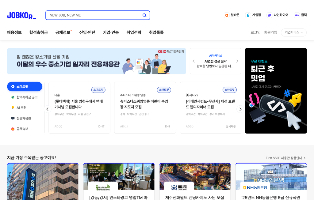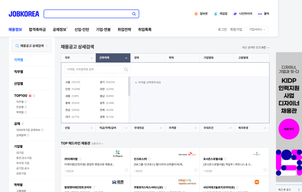 대한민국 대표 구인구직, 취업 정보 & 채용 플랫폼 잡코리아 웹사이트, 웹디자인