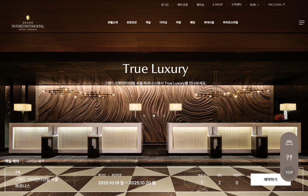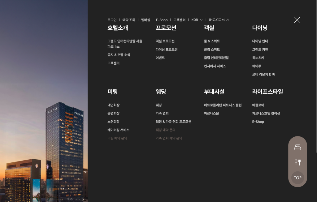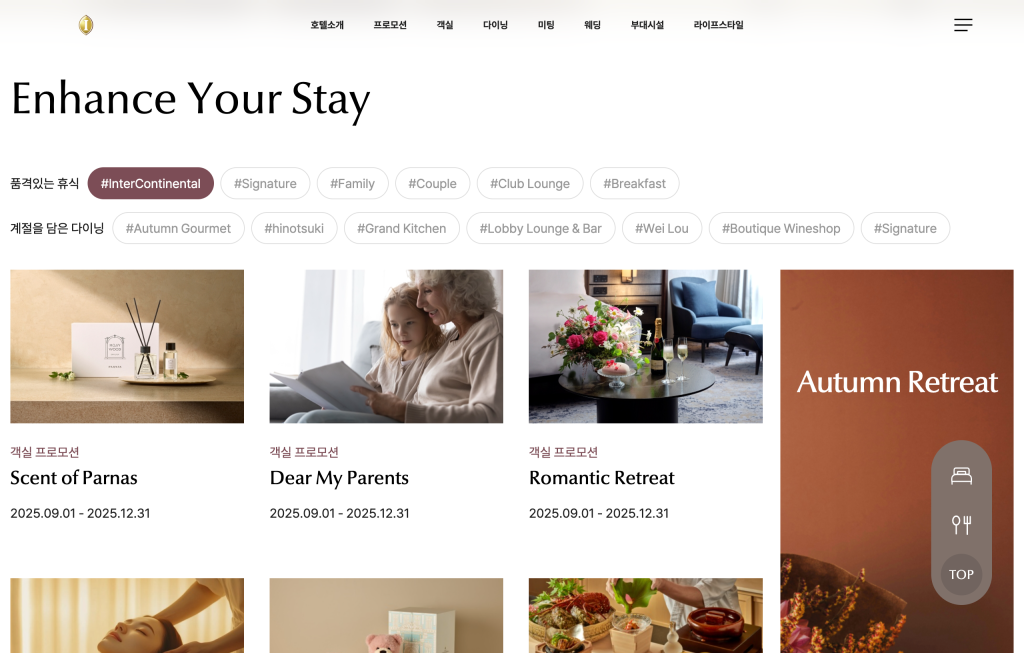 Grand InterContinental Seoul Parnas 웹사이트, 웹디자인