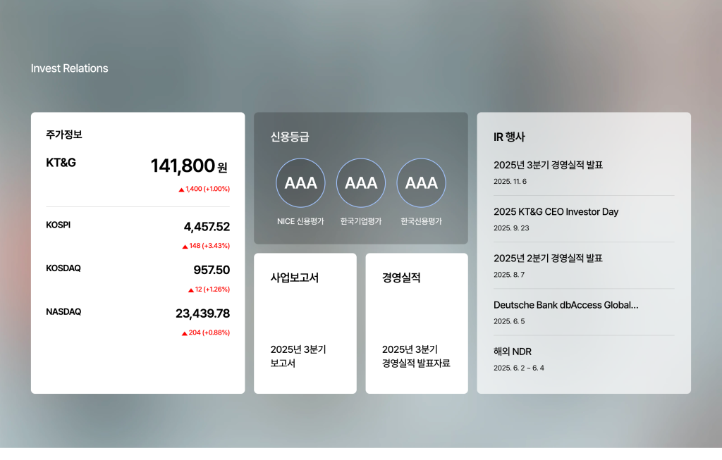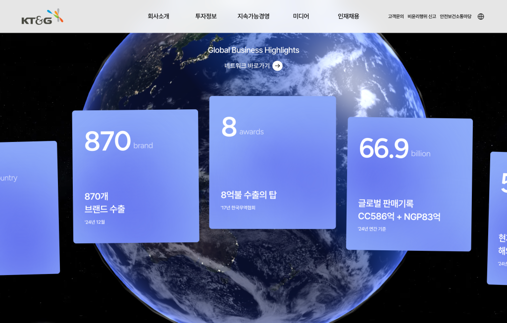 글로벌 초우량 기업으로 도약하는 KT&G 홈페이지입니다.KT&G 웹사이트, 웹디자인