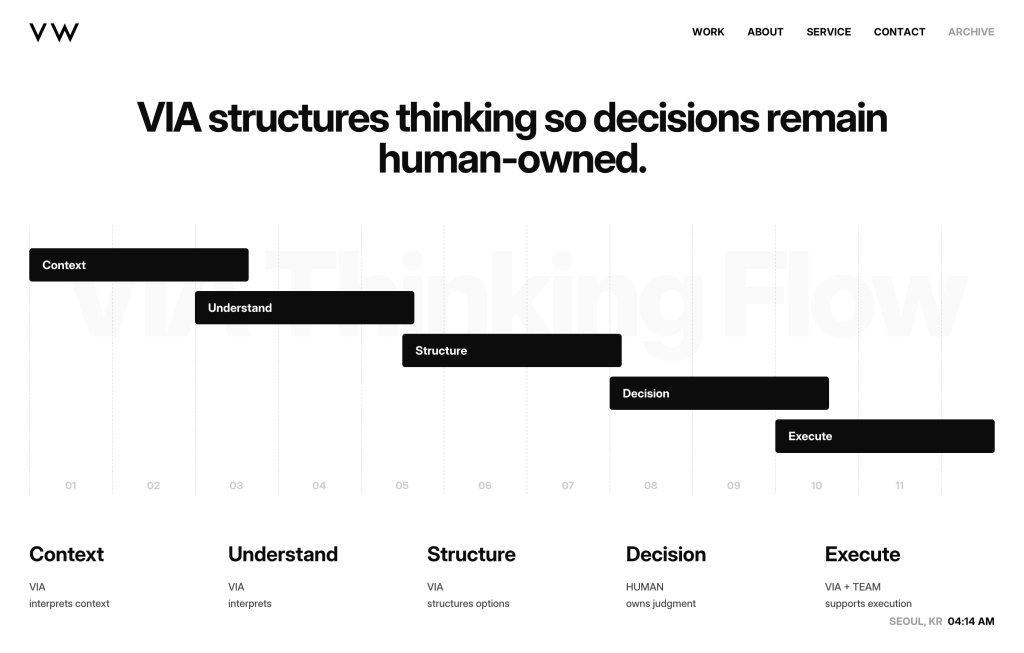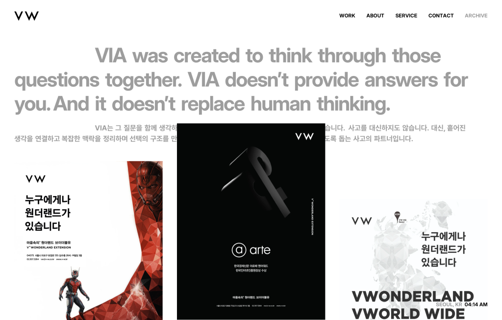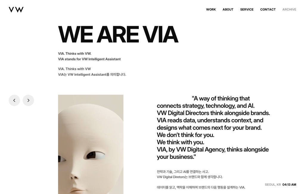 A brand & AI experience partner shaping meaningful digital futures. VW Digital Directors는 전략, 기술, AI를 연결해 브랜드의 방향을 디지털로 구현합니다.