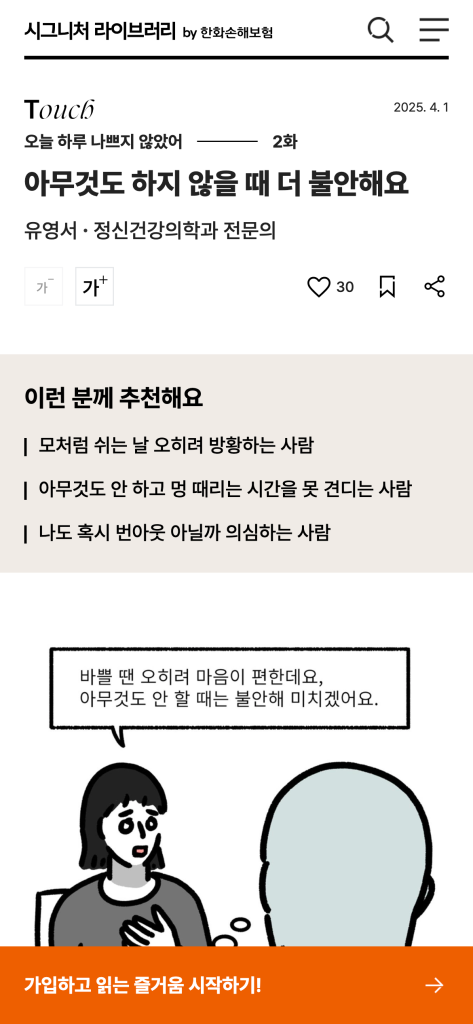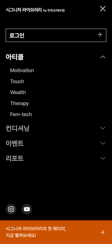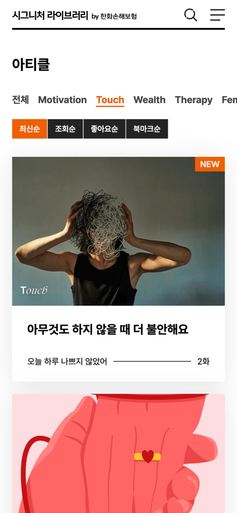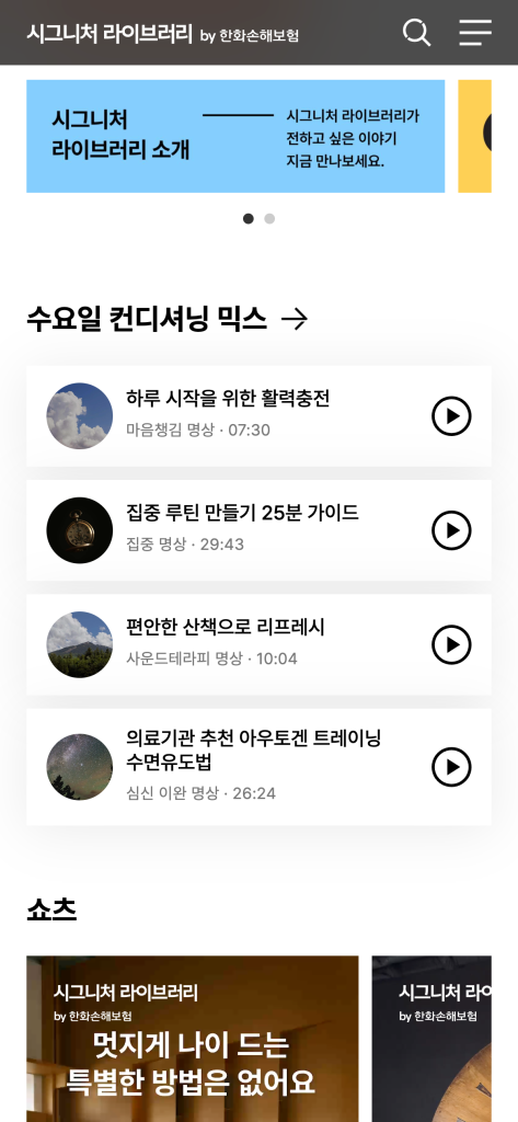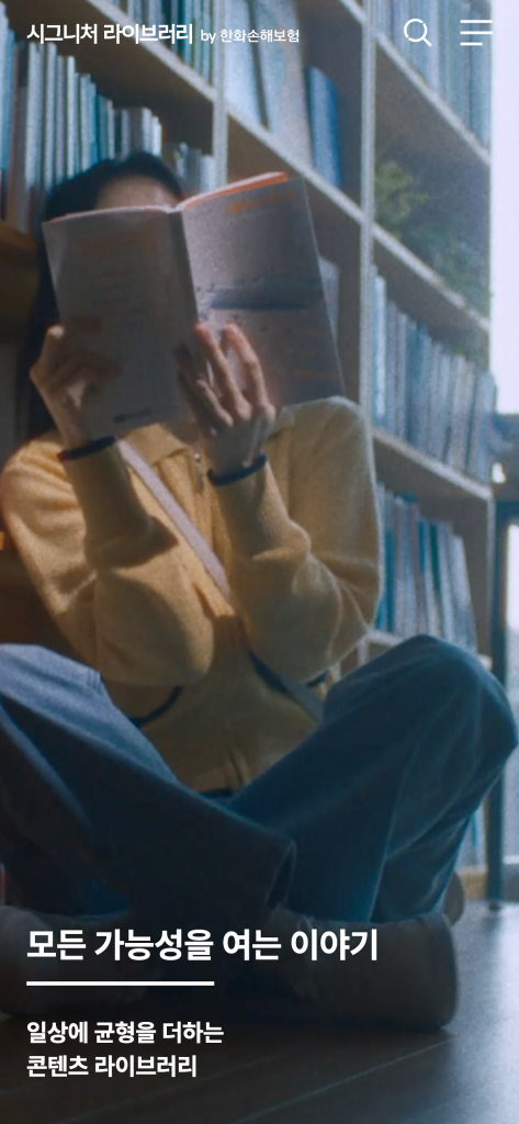 한화손해보험 시그니처 라이브러리 모바일 웹사이트, 모바일 웹디자인