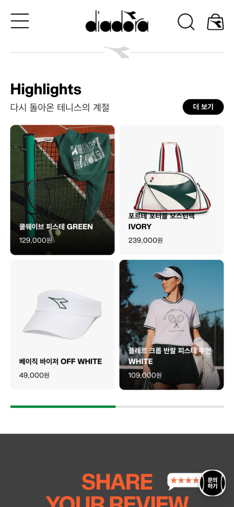 디아도라 모바일 웹사이트, 모바일 웹디자인