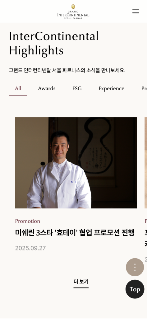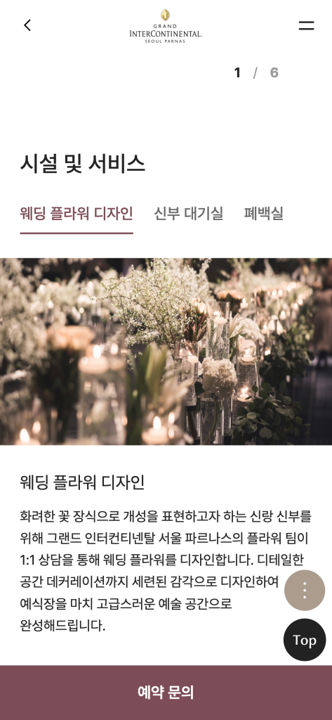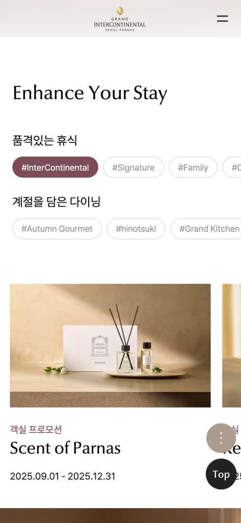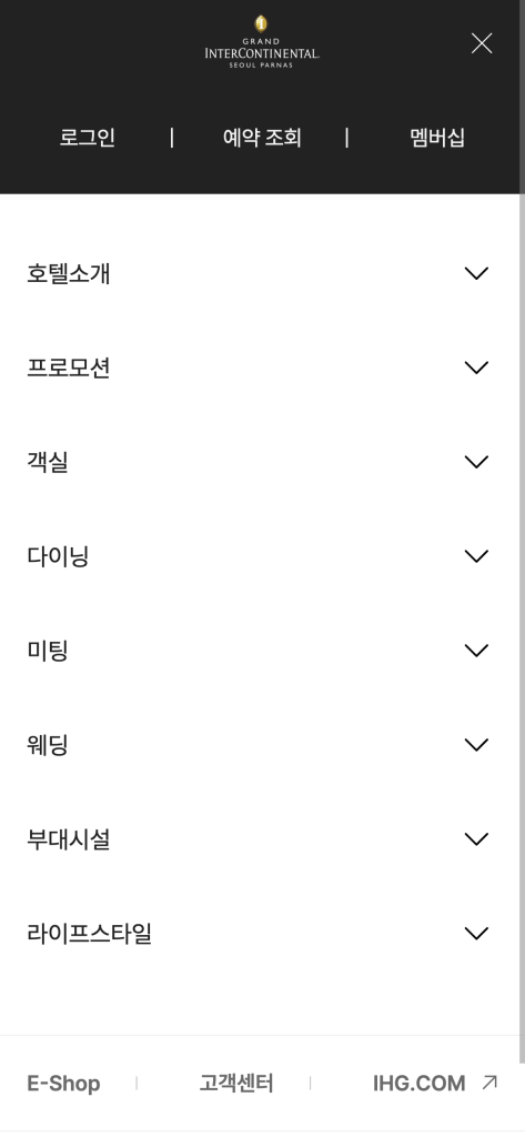 Grand InterContinental Seoul Parnas 모바일 웹사이트, 모바일 웹디자인