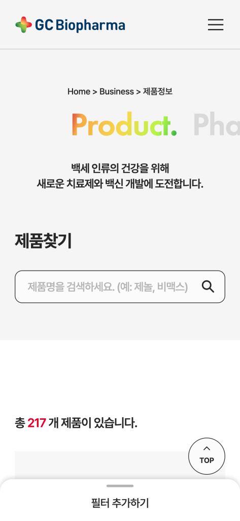 GC녹십자 모바일 웹사이트, 모바일 웹디자인