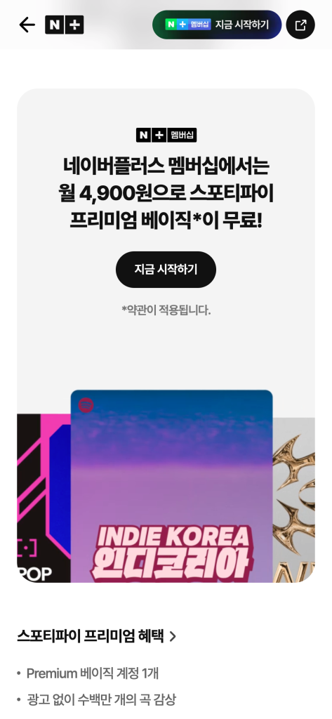 새로운 음악 경험의 시작 네이버에서 스포티파이를!