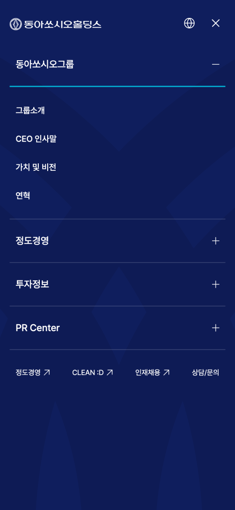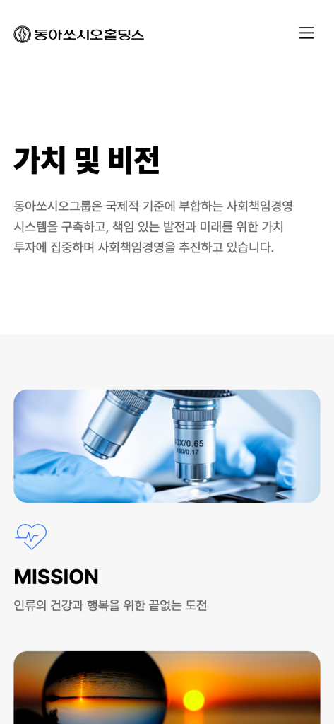 동아쏘시오홀딩스 모바일 웹사이트, 모바일 웹디자인