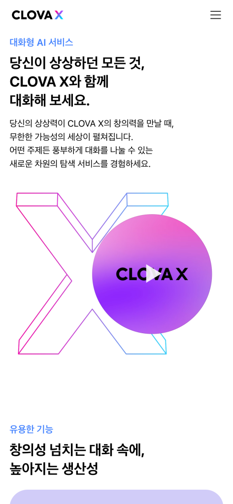 네이버 클로바,클로바X,Clova X 모바일 웹사이트, 모바일 웹디자인
