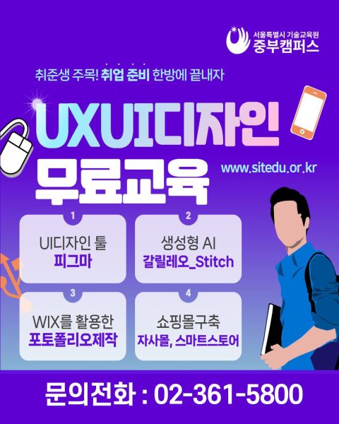 서울시 기술교육원 중부캠퍼스에서 UXUI디자인과가 추가모집 중입니다.